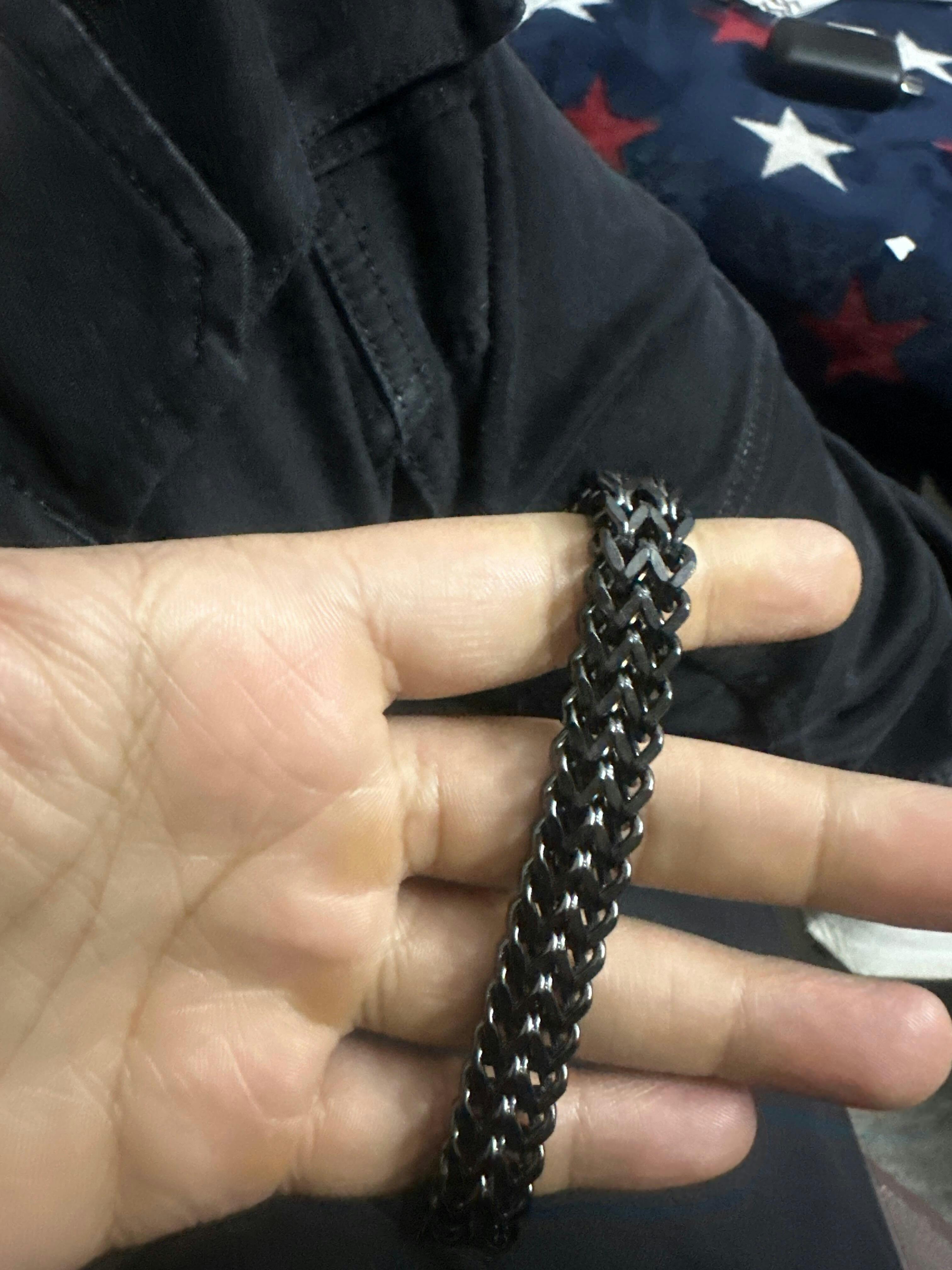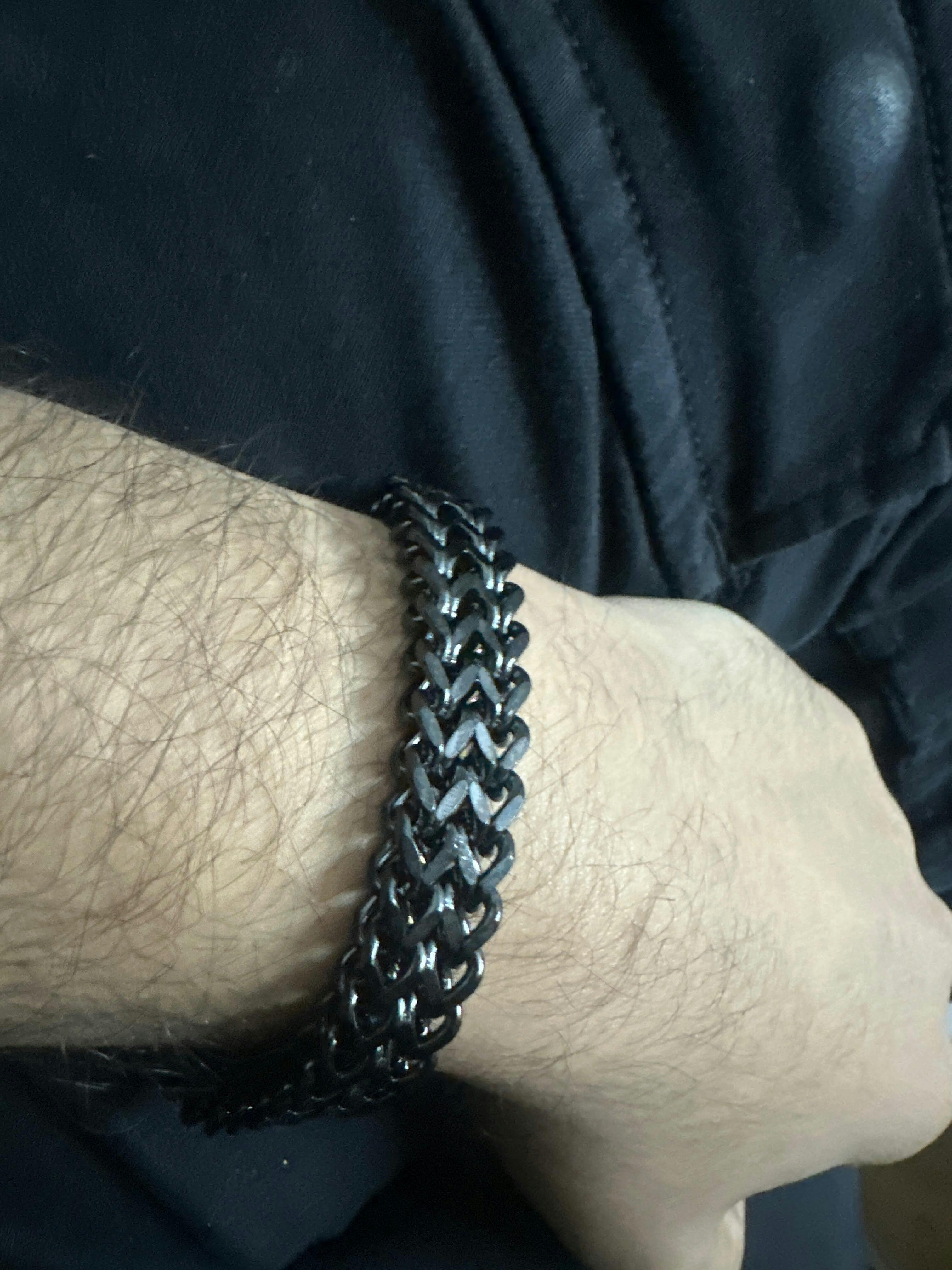 This black chain bracelet is built for men who like their style sharp and effortless. The deep black finish and tightly woven links give it a powerful, low-key luxury look that works day or night.